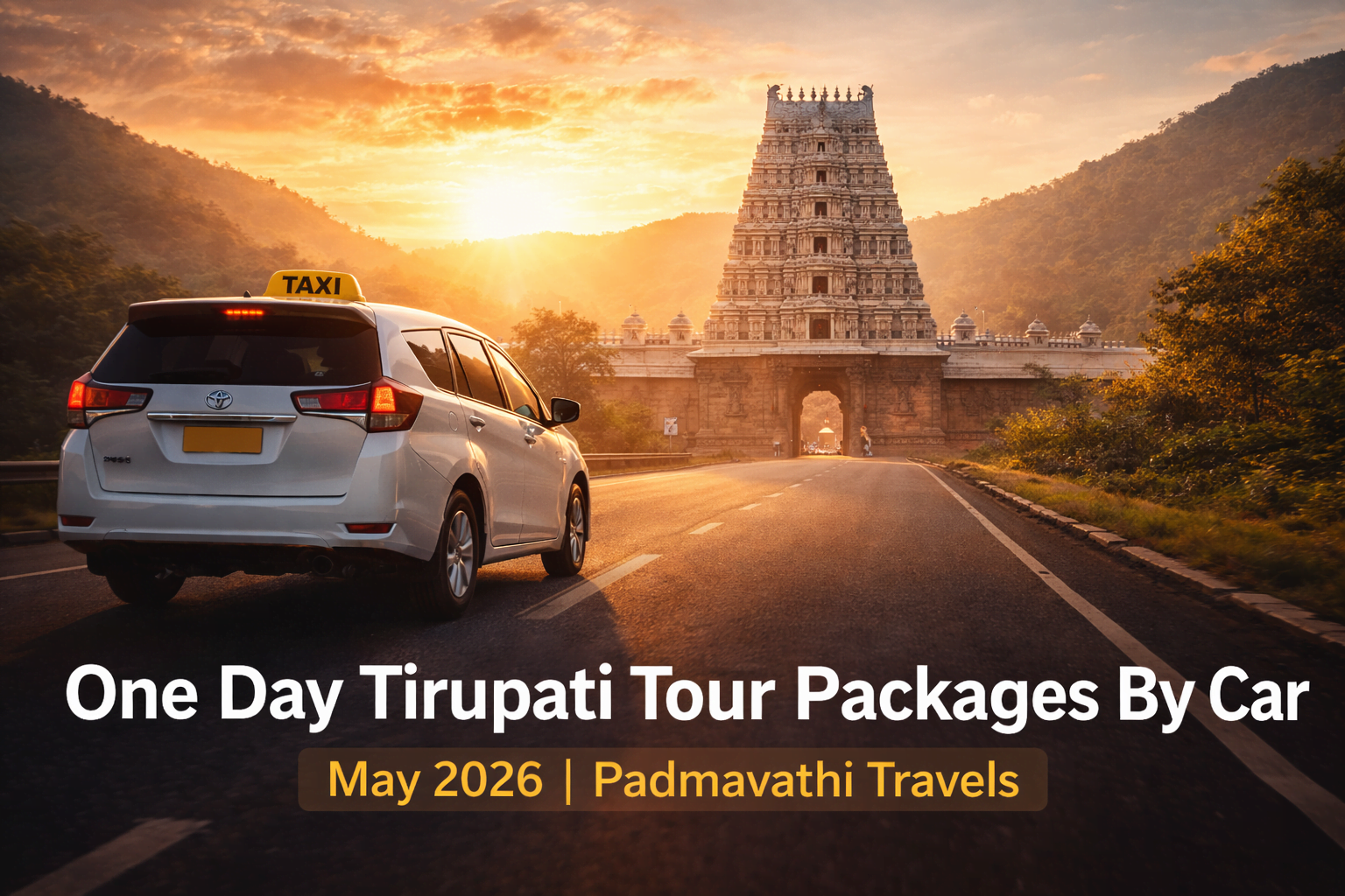 Book one day Tirupati tour packages by car for May 2026 with Padmavathi Travels. Cool AC cabs, fast darshan & best rates. Book your trip today!