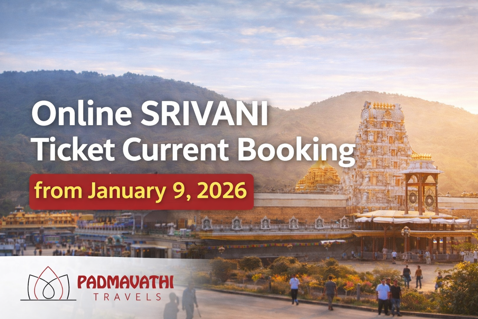 Online SRIVANI Ticket Current Booking starts from January 9, 2026. Know timings, rules, trial details, and same-day darshan planning support.
