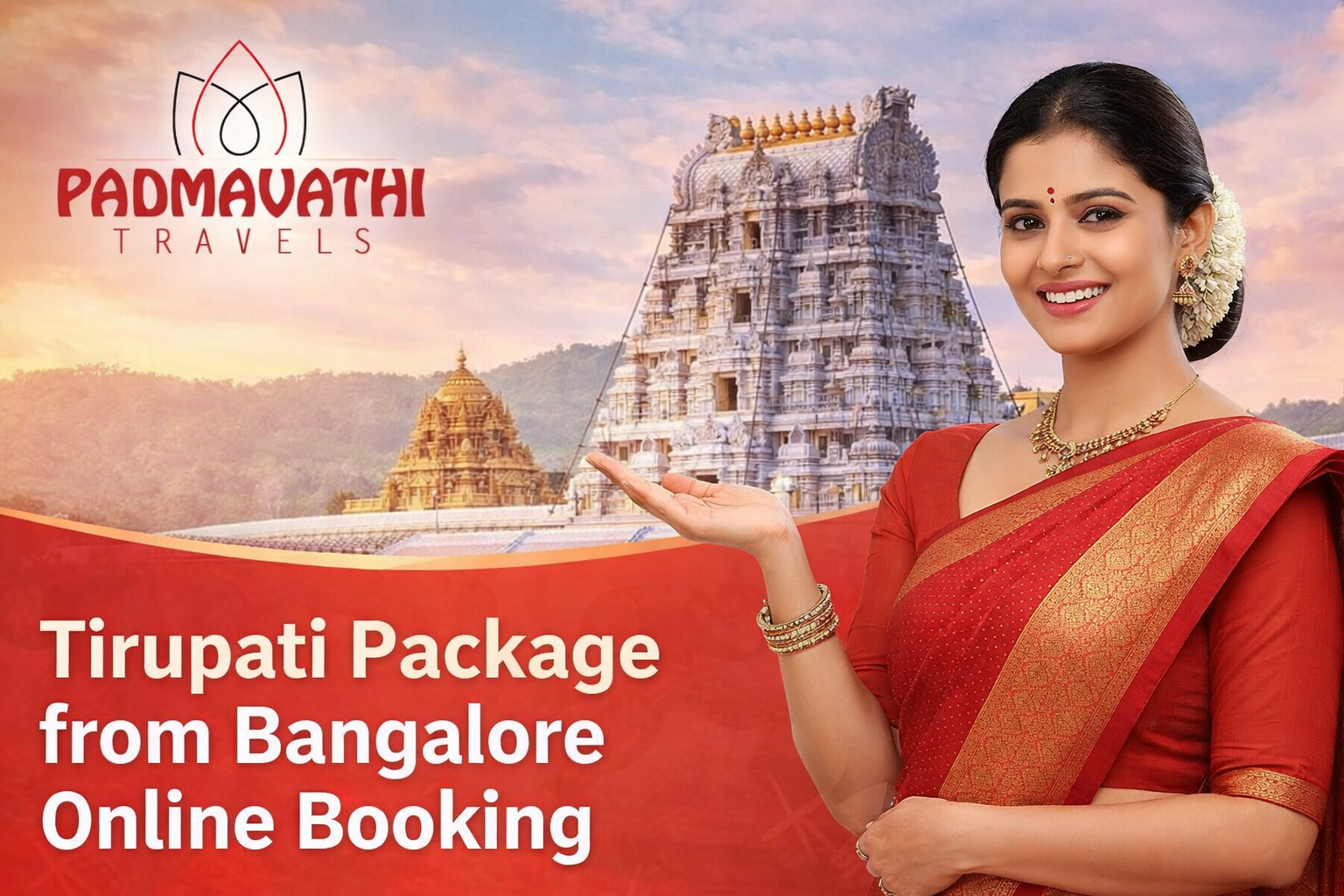 Tirupati package from Bangalore online booking with Padmavathi Travels. One day & two day darshan packages, car travel, Srivani darshan support.